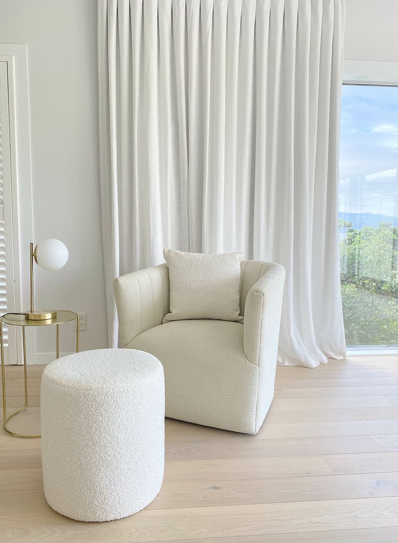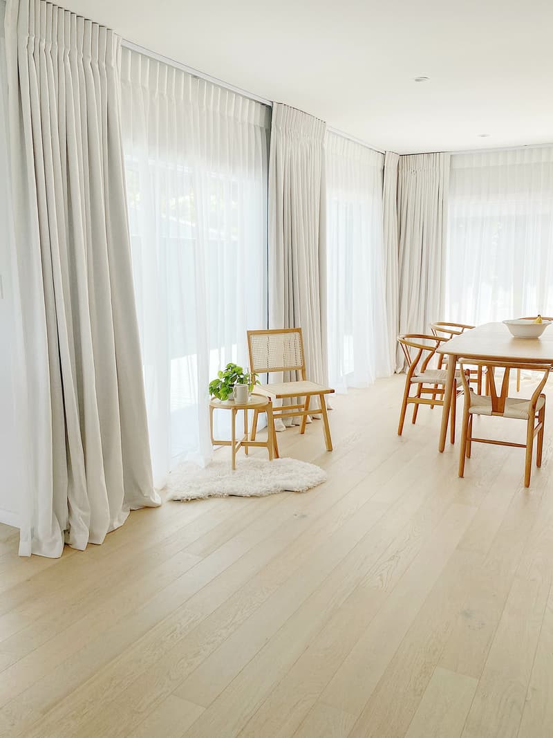 "Our curtains finished off the space beautifully, as we wanted them to add some softness, warmth and texture to the space. With quite a high stud, we wanted them to be floor-to-ceiling with a subtle puddle at the bottom to add texture next to the wooden floor.